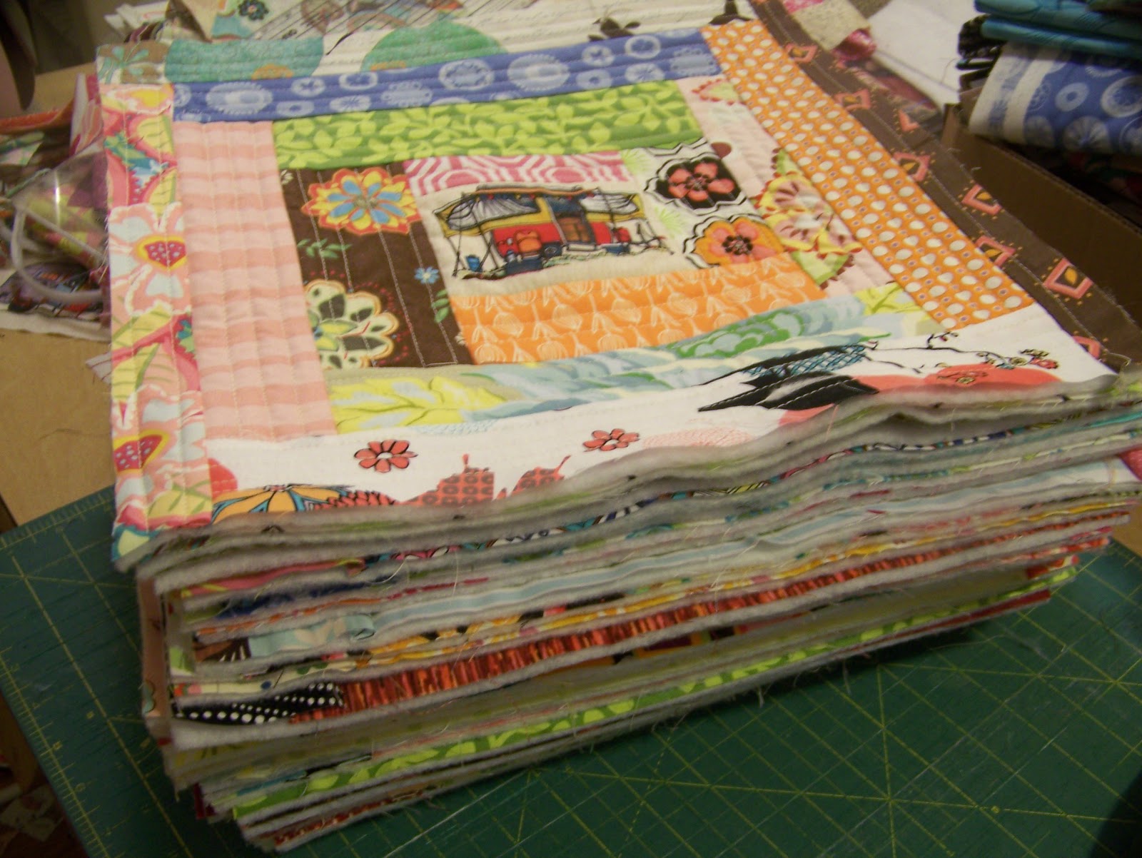 Your QAYG blocks are great, Andrea! The prints and combination of prints are so modern! I really like what you've done. Is this your own idea, or did you follow a tute somewhere? Your bento box swap fabrics are really nice too. Hope you can find the backings you're looking for.